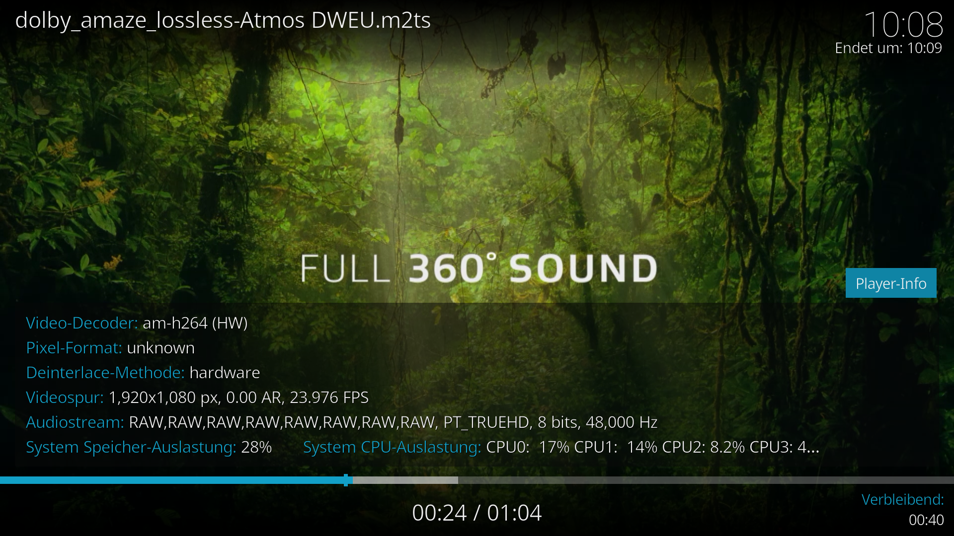 "da war dein AVR wohl auf einen Upmixer eingestellt.....das erste ist die Youtube Datei (Stereo) , Werte sind abzulesen.das zweite Bild ist die Originaldatei in 7.1.(erkennbar an 8 x RAW).im übrigen steht in der Youtube Beschreibung 5.1 Atmos, das schließt..."» Weiterlesen: Verkabelung AVR ->TV und Chromecast