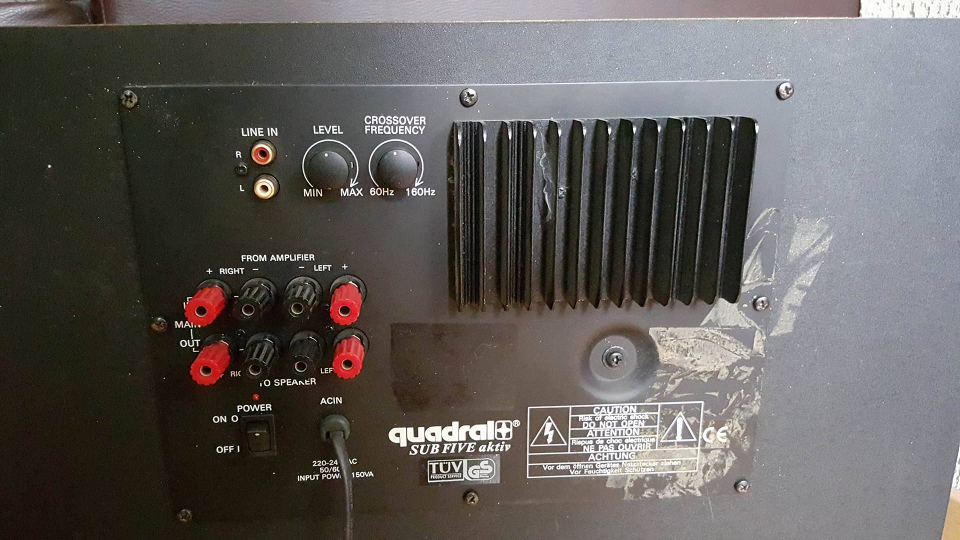 "Hallo zusammen,ich habe seit einiger Zeit ein Problem mit meinem aktiv Subwoofer, und zwar brummt er sobald ich ihn Einschalte.Es ist ein Brummen welches ständig zu hören ist, jedoch ist diese Lautstärke abhängig, erhöhe wird es lauter und umgekehrt.Folgendes..."» Weiterlesen: Quadral SubFive aktiv
