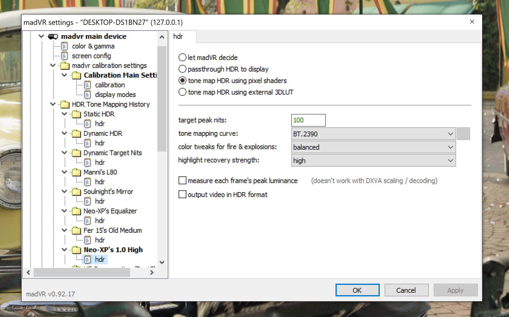 "Danke, hab den Film nun gestartet und dann an der Stelle nachgesehen. Profil ausgewählt (Neo XP 1.0 High)995063EDIT Hatte 103 und 103er Settings von dir in einem Ordner...werde das nach dem Mittag (Tochter kommt gleich ) gegenchecken.Vielen Dank erst..."» Weiterlesen: Bau eines Blurayplayers mit KODI und madVR