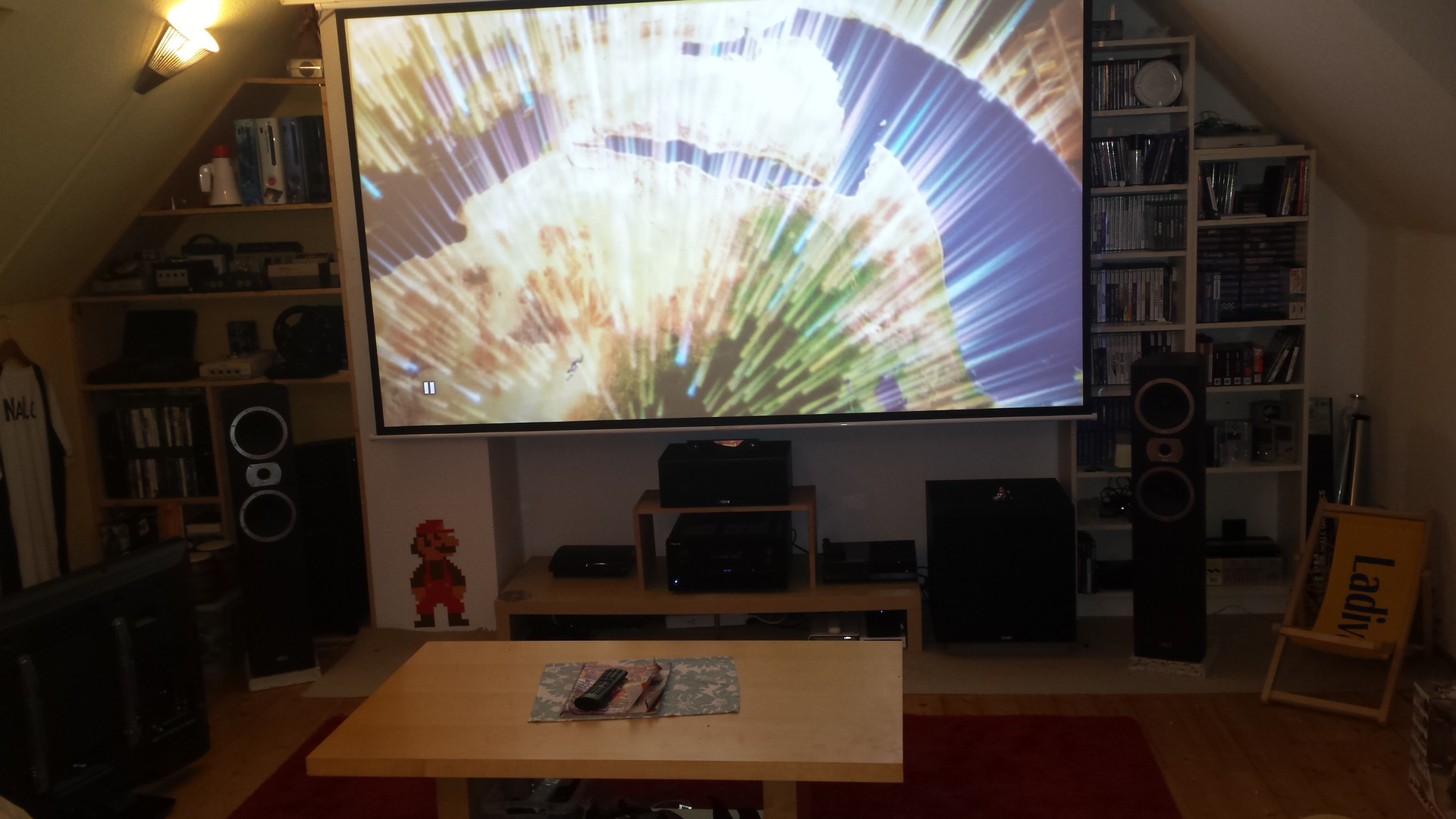 "522651522652522653522654522650MEIN Raum der Freude.Wenn mal die Kumpels vor der Tür stehen oder im TV nur mal wieder CSI BERLIN ( oder wie die alle heissen) läuft . Gibt es nichts besseres als eine Rund Mario auf dem NES zu daddeln ,oder einen MÄNNER-FILM..."» Weiterlesen: Bilder eurer Wohn- & Heimkino-Anlagen
