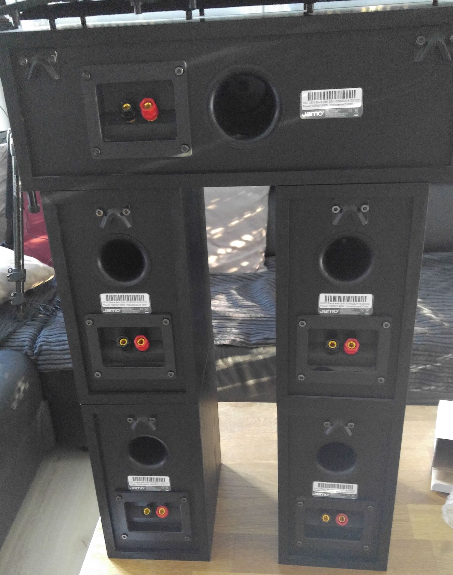 "Ich verkaufe nach Umzug und Aufrüstung auf Standboxen mein bisheriges 5.1-Set, bestehend aus:- 4x Jamo S522 (Black Ash)- 1x Jamo CEN52 (Black Ash)- 1x Jamo SUB 210 (schwarz)Die 5er Serie entspricht technisch der bekannten 6er Serie von Jamo, also S602/S622..."» Weiterlesen: 4x Jamo S522, 1x Cen52 (beide Black Ash), 1x Subwoofer SUB 210