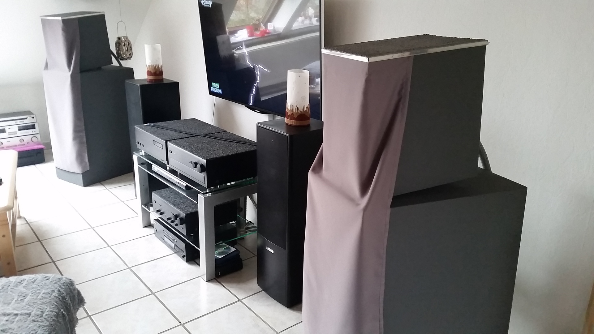 "914546Ja , wenn die Lautsprecher nicht spielen sind sie abgedeckt .Es ist ein nahezu lichtundurchlässiger Stoff . Die Acrylglashauben sind natürlich bei Betrieb nicht darübergestellt. Die Hauben schützen absolut exellent vor Staub , Katzenhaare,..."» Weiterlesen: Bilder eurer HiFi-Stereo-Anlagen