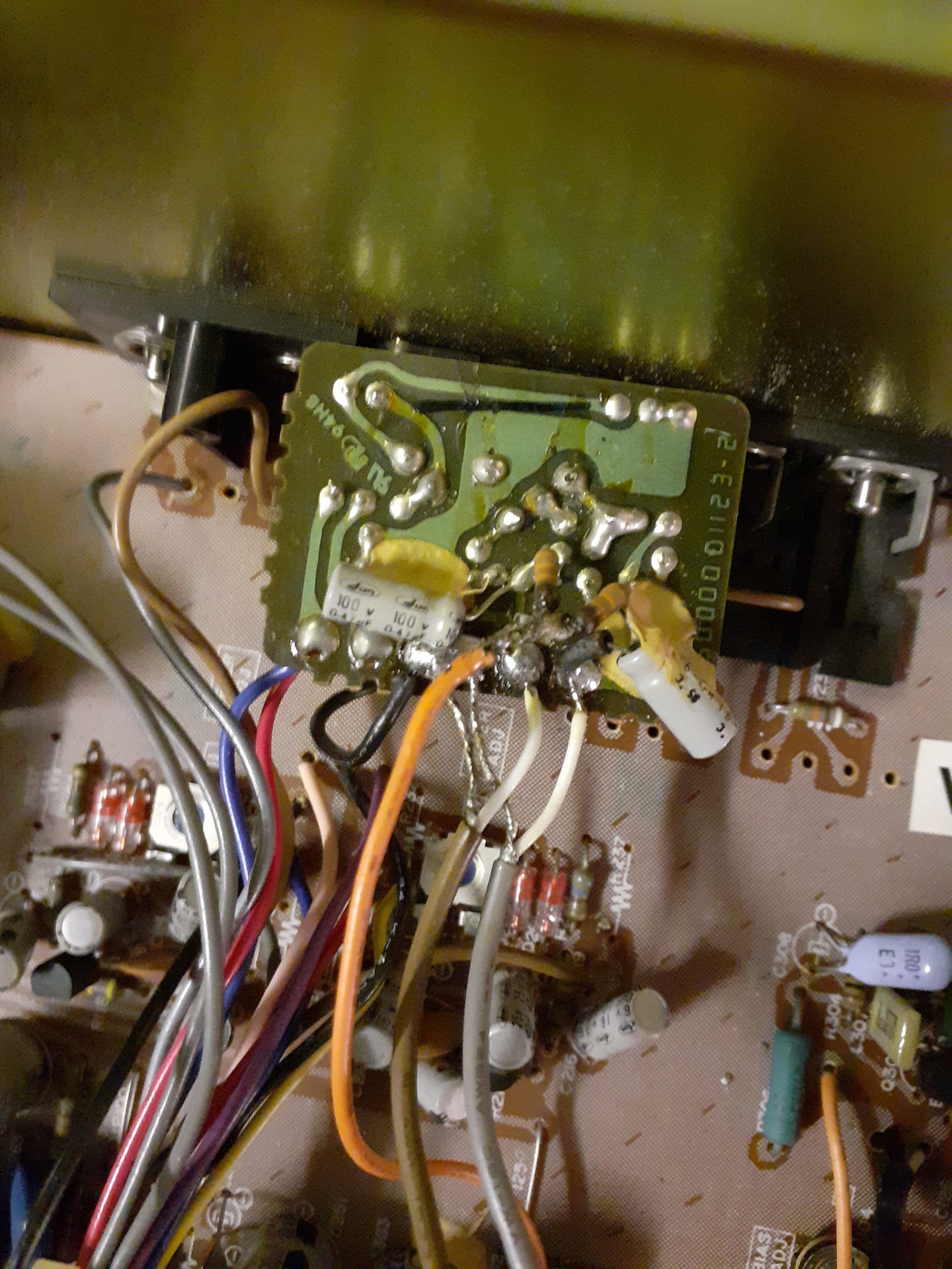 "Hallo Forum,ich glaube, dass ich die Reparatur geschafft habe. Das Orange Kabel ist direkt an den beiden Widerständen angelötet (nicht an der Platine). Die Widerstände sind für den L und R Kanal und ich vermute, dass der Kontakt zum R-Kanal nicht..."» Weiterlesen: WEGA VU Meter Teil 5