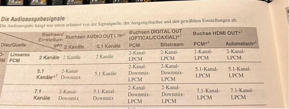 "Richtig der Player kann es nicht dekodieren. Das macht ja der AV ReviverSihe dazu ein Bild aus der Bedienungsanleitung das er 7.1 ausgeben kann.1226641"» Weiterlesen: Probleme mit einem Sony BDP S300 BluRay Player