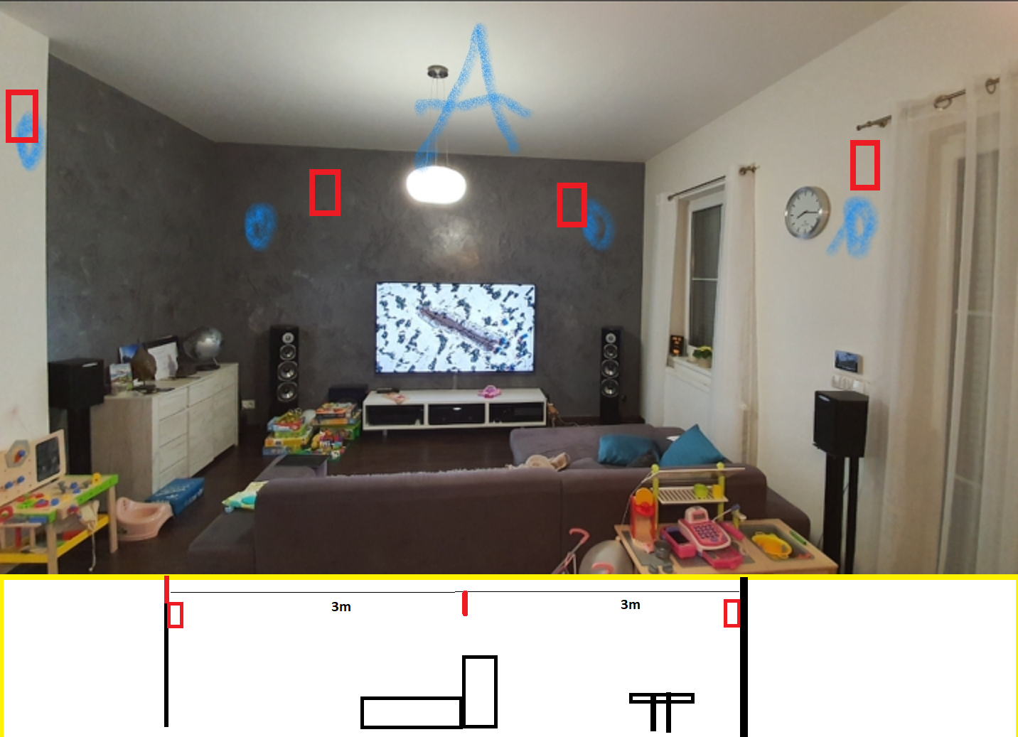 "Etwas kamm jetzt zu mir:) Ich habe Sofa etwa 3m vom TV und hinter Sofa noch etwa 3m Platz, dort steht ein Esstisch und Wand. Rote markiert Variante A, 2 LS vorne und 2 LS neben Sofa.oder...Also am besten konnte auch die Variante in der Skizze funktionieren..."» Weiterlesen: Der 3D-Surround-Erfahrungsthread (Auro-3D, Dolby Atmos, DTS:X)