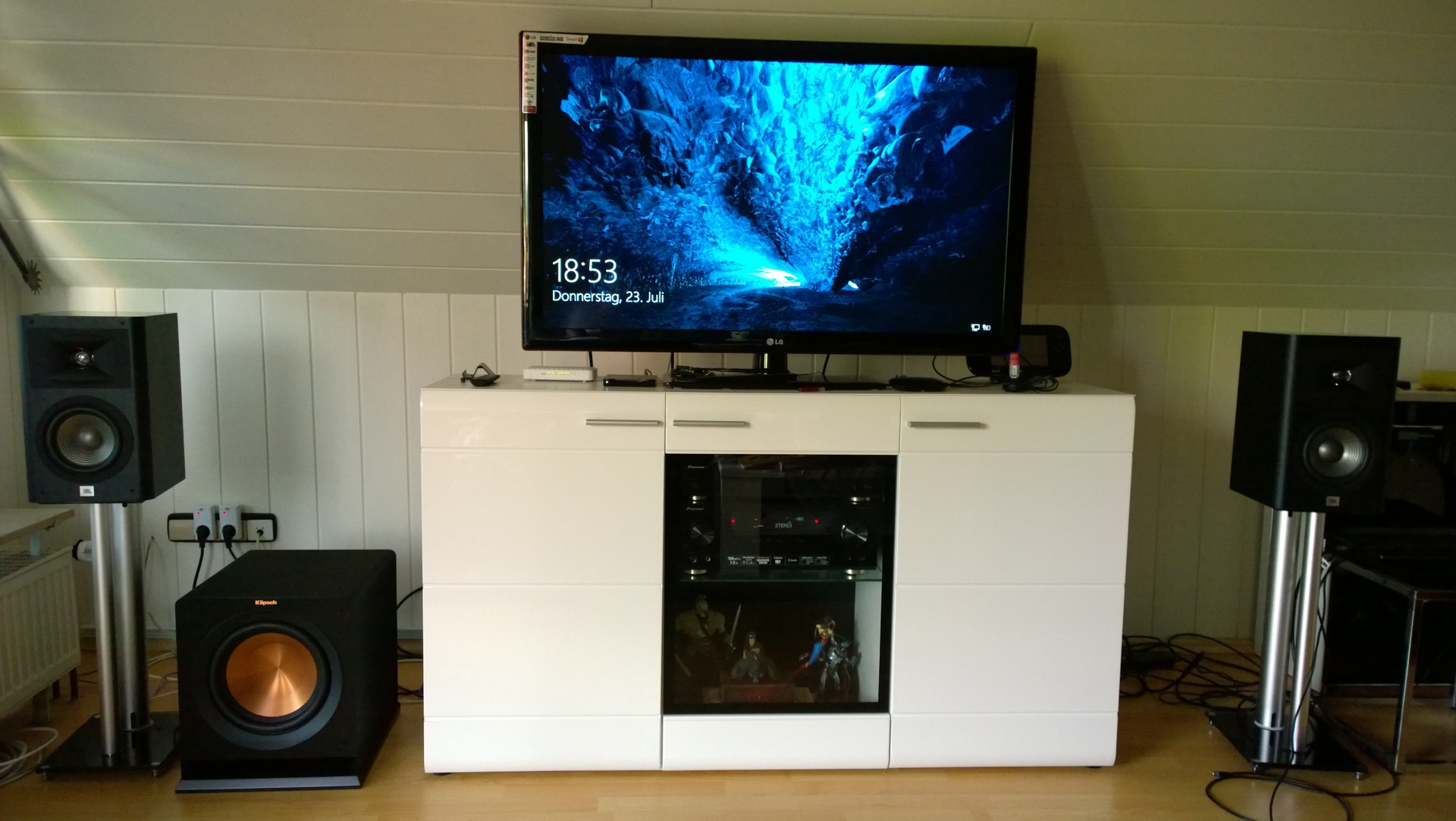 "die 260er bekomme ich bestimmt nicht gestellt.Selbst bei der 250er wird es schon schwierig, da ich auf der linken Seite eine Heizung habe.Rechts von dem linken Lautsprecher steht der Subwoofer.Hier ein Bild:582329Die JBLs sind schon verkauft und momentan..."» Weiterlesen: Thread für Klipsch Fans