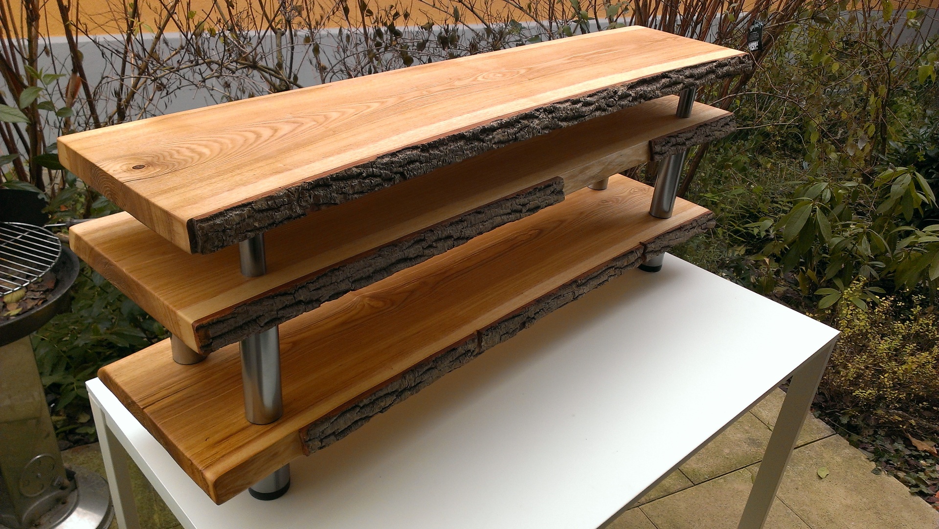 "Das Holz wahr vom schreiner,Esche wie schon erwähnt.hat sägerau 130€ Gekostet,wahr ne 4meter irgendwas bohle.Die hat er noch nach meinen angaben in 3 teile zerschnitten.Zum Hobeln und einmal grob vorschleifen wahr ich im dorf nochmal bei nem Schreiner.Feinschliff..."» Weiterlesen: Massiv Esche Lowboard