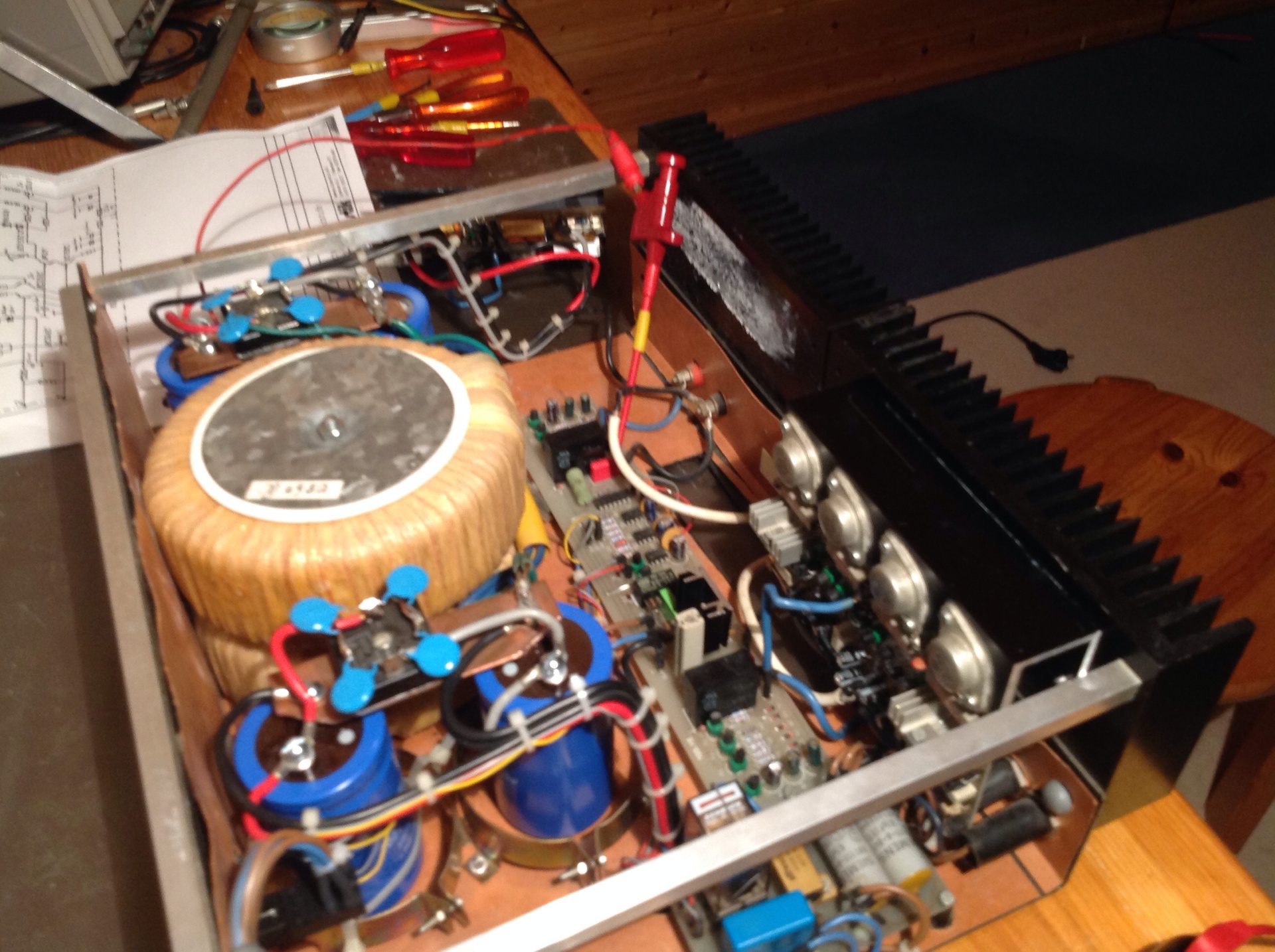 "Habe gerade nochmal was getestet.Das vermeintlich Defekte ? Modul vom Metallgehäuse abgeschraubt und in abgeschraubten Zustand wieder Inbetriebgenommen. Alle Verbindungen wie im Normalbetrieb sind vorhanden nur die Verbindung Kühlkörper Endstufentransistoren..."» Weiterlesen: Quadral PA-03 Endstufe