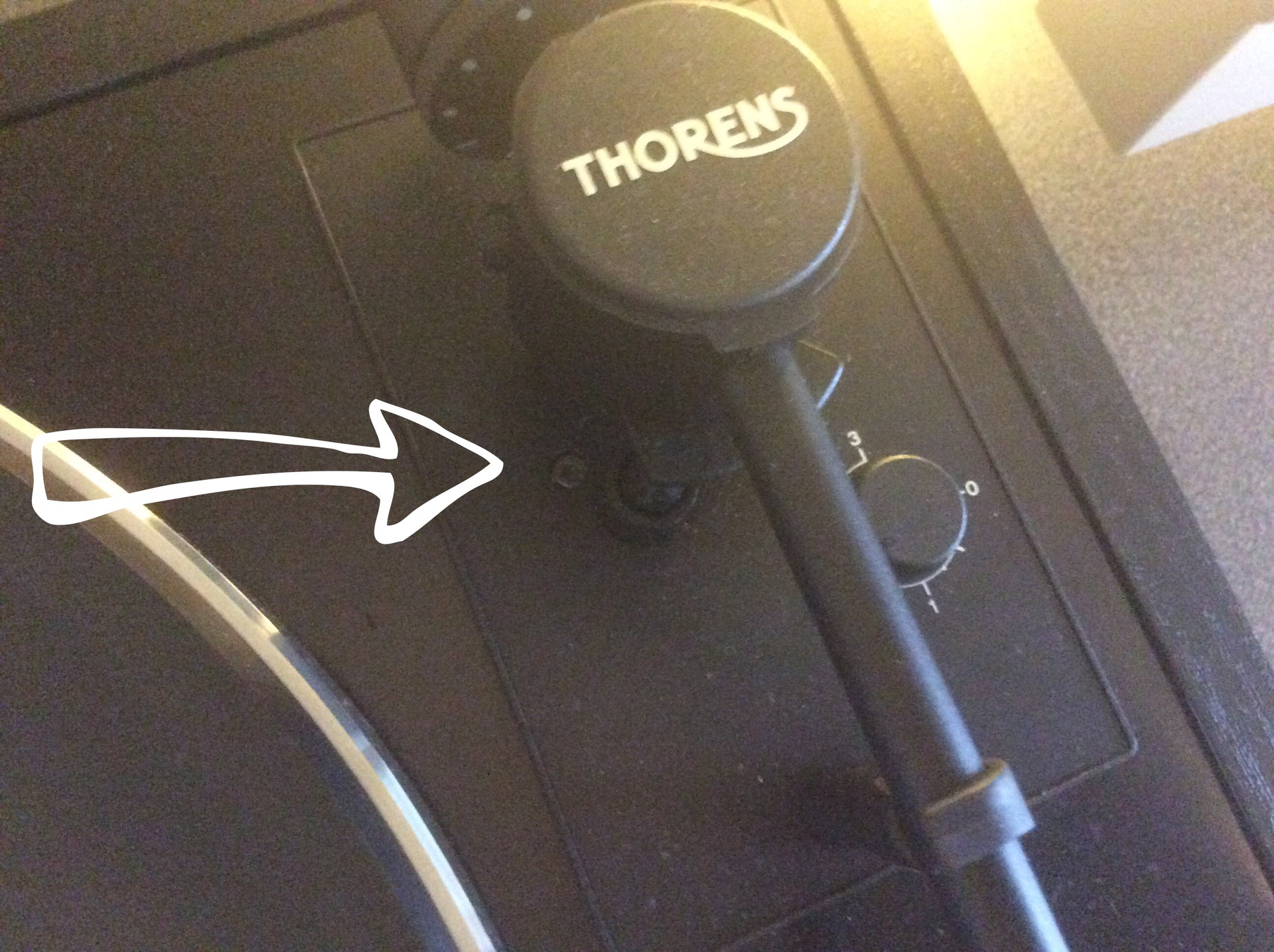 "646344An der kleinen Imbusschraube kann man die Abhebehöhe verstellen"» Weiterlesen: Abhebehöhe einstellen am Thorens TD 146 MK VI