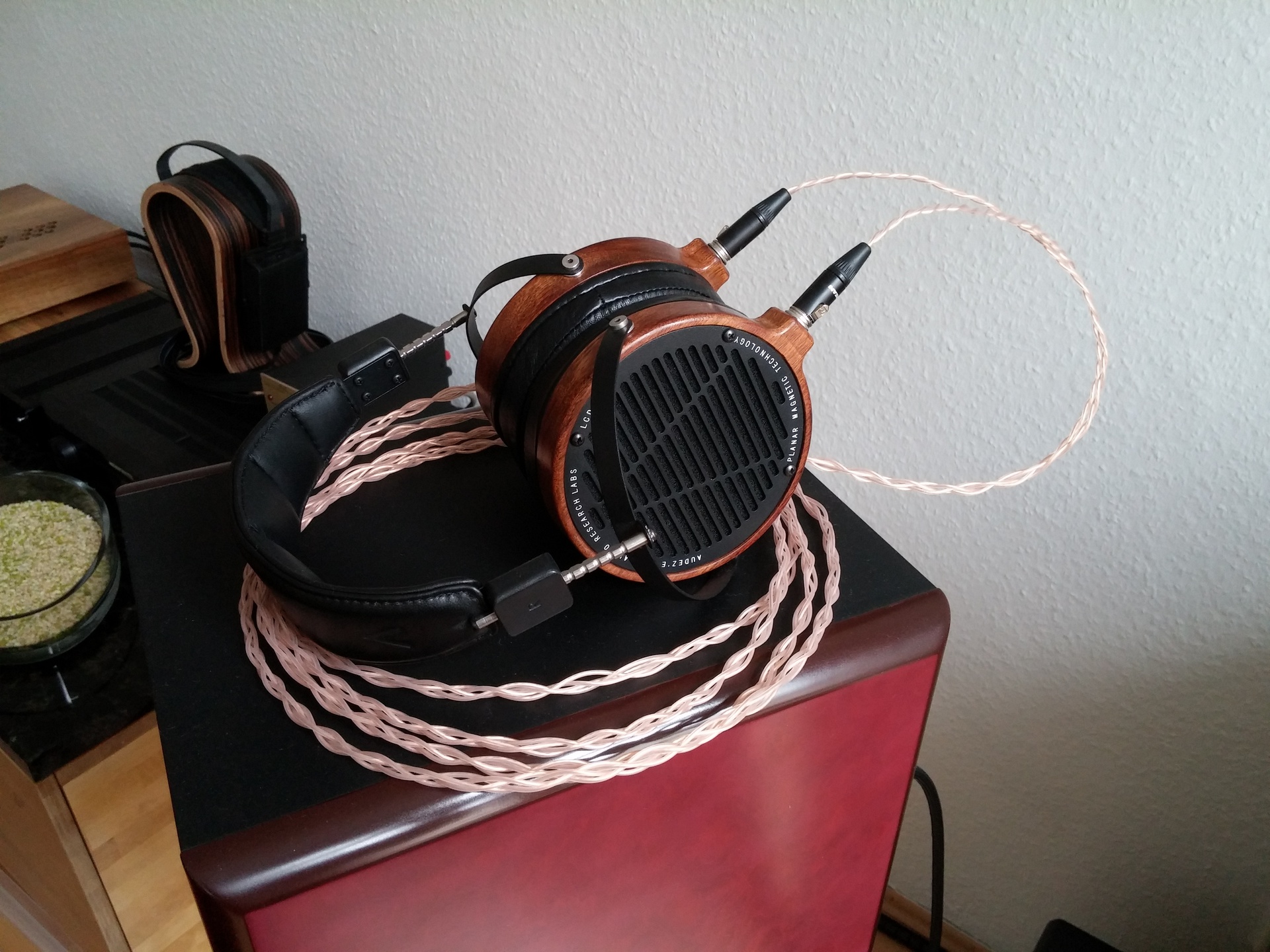 "Gefällt mir sehr gut. Tolle Kopfhörer! Dabei habe ich den schönsten ja unterschlagen (Den hatte ich auf dem Kopf )548385Das Kabel habe ich selbst geflochten und gelötet, ähnlich schöneAftermarket-Kabel kosten ja meist ein kleines Vermögen..."» Weiterlesen: Bilder eurer HiFi-Stereo-Anlagen