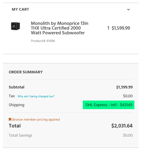"...nur leider nicht in DE zu bekommen. ...Nicht im Laden, aber bestellbar ist er. Gegen ein klein wenig Versandkosten und vermutlich plus obendrein ordentlich Steuern... 1120735"» Weiterlesen: Monoprice Monolith 13 THX Ultra Subwoofer