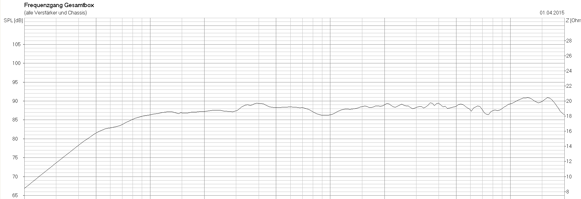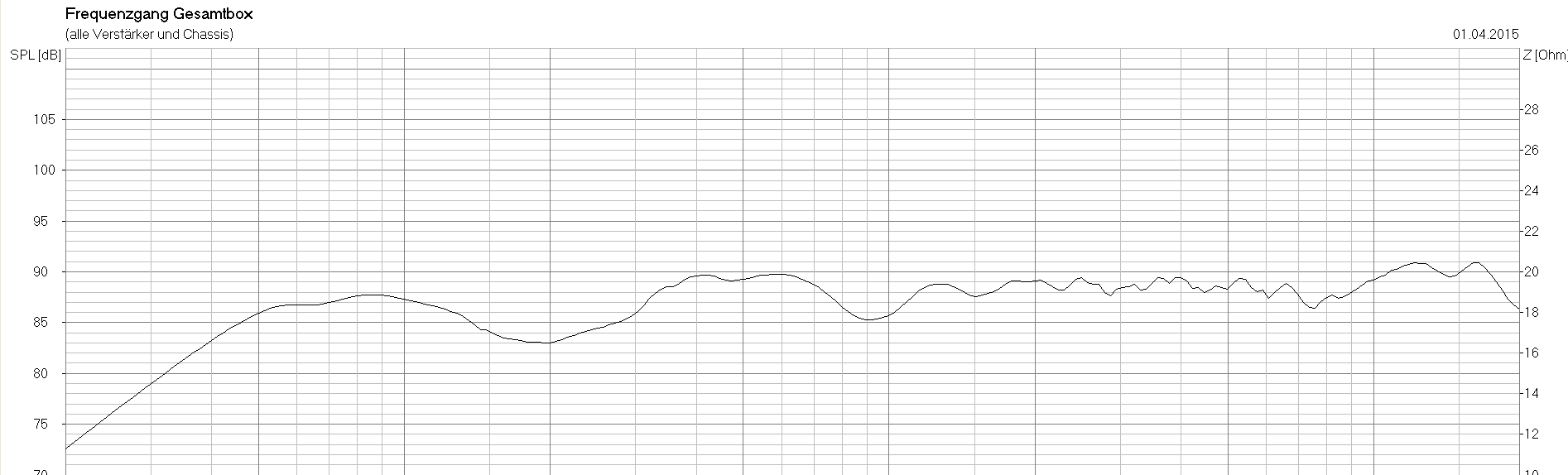 hallo, an alle Hifi Fans, Da es sich hier um ein System handelt, das nur im Privatbereich verkauft wird, und nicht auf dem Markt zu finden ist, möchte ich dieses hier beschreiben. Es handelt sich um eine Idee, in einer Gruppe von Hobby Hifi-fans und Tontechnikern ein System zu bauen, das mit Highend Anlagen konkurrieren soll. Da guter Klang leider sehr teuer ist, wurde von vornherein dieses (teils) Selbstbauprojekt angestrebt. Es was die Idee, besten Klang zu erzeugen. Da Klang aber relativ ist und jede Person einen anderen Geschmack für Klang hat, kann man nie die "für jeden passende" Anlage bauen. Wohl aber kann man gewisse Effekte schaffen, die dem Klangbild gewisse Freiräume bietet. Dies kann man nur mit Radialstrahlern verwirklichen. ![]() Links zum Projekt selbst: ![]() (Bei Interesse nur ruhig ein Like setzen) ![]() Einige Daten zum System: Es wurde mit universitären Messinstrumenten gearbeitet, um möglichst genaue Messdaten erfassen zu können. Lautsprecher mit: -nach oben strahlenden Tief-Mitteltöner 15"Mid-range Woofer (von 25-2,3kHz) -nach unten strahlender Hochtöner 1"HF Treiber (von 2,2-21kHz) -Wirkungsgrad: 102,2db/W/m von 32Hz-17kHz (-3db) -Leistung: 400VA Dauerlast(gesamtes Spektrum) / 800VA Spitzenlast / nicht gemessen -Schallpegel bei 330W RMS Signal: 128db(A) 1m Klangliche Beschreibung: Die meisten Zweifel werden wahrscheinlich aufgrund des "zu groß" gewählten Tieftöners entstehen. Erstaunlicherweise hört man bei diesem System aber kein klangliches "Mittenloch", wie es oft bei Systemen mit zu großen Tieftöner der Fall ist. Der Klang ist sogar eher etwas mittenbetont. Der Hochtonbereich ist milde ausgelegt, passend für eine Wohnzimmeratmosphäre. Wenn man hier von Tiefen Bässen spricht, ist eher schon das "spüren" und nicht das "hören" gemeint. Der Bass ist im unteren Bereich stark ausgeprägt und durch den hohen Wirkungsgrad hat man mit geringer Verstärkerleistung schon ordentlich Druck. Der Raumklang ist eine Klasse für sich. Man ist der Meinung, mitten in einem Konzert zu stehen. Egal, wo man sich im Raum befindet, (unbeachtet der Raumresonanzen im Bassbereich), ist das Klangbild in jeder Ecke bemerkenswert. Man hat immer "Stereoeffekte". Wenn man erst mal solch ein System getestet hat ( MBL , Duevel ,...) will man sich wieder schwer von dessen Klang verabschieden. ;-) Es ist jedem Interessenten nur zu empfehlen, sich ein solches Projekt zu verwirklichen. Meist liegt der Erwartungswert unter den Ergebnissen ;-) Videolinks: ![]() [Beitrag von Tine14 am 24. Feb 2015, 22:04 bearbeitet] |