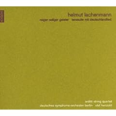 Hallo Klassikkonsument und alle anderen, nochmal kurz zu Lachenmann und seinem Streichquartett "Reigen seliger Geister". Es war ja offenbar eine Weile lang nicht möglich, eine CD mit diesem Stück zu bekommen -- zumindest nicht zu bezahlbaren Preisen. Aber nun hat das Warten ein Ende! Vor ganz Kurzem hat das Label KAIROS eine Lachenmamm-CD mit dem gesuchten Stück und noch mit "Grido" und "Gran Torso" herausgebracht. Es spielt das Arditti-Quartett. Vielleicht ist das ja noch für jemand anders von Interesse. Viele Grüße, Mellus |