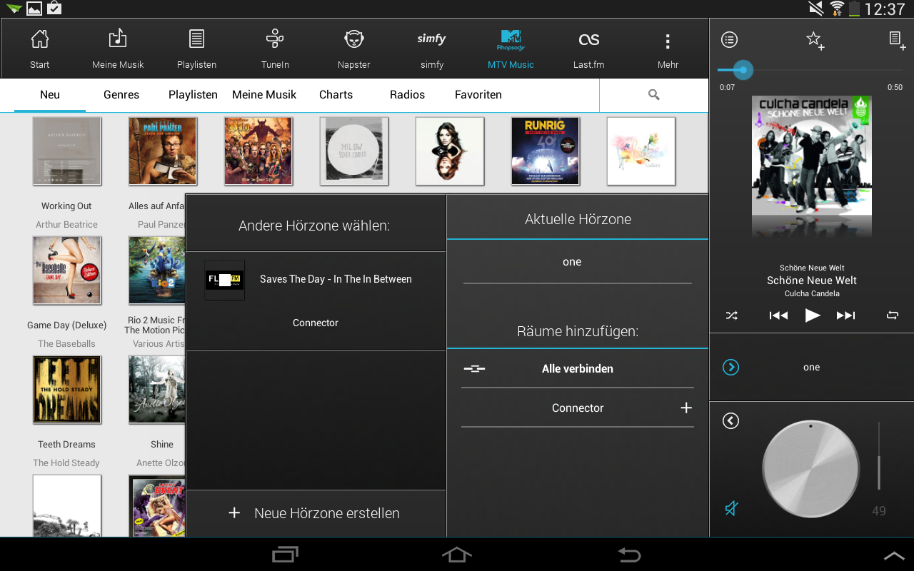 das klingt doch echt super. Genau so habe ich mir das vorgestellt. Vielen Dank für die ausführliche Antwort. Die tuneIn app habe ich auch auf dem Android und bin sehr überzeugt. Eine letzte frage habe ich noch zur bedienung. Angenommen meine Mutter hört munter Radio auf dem One und möchte nun das Gehörte auf den nächsten raum "spiegeln". Was muss sie dazu tun? Den ensprechenden Raum (connector) in der APP auswählen und start drücken oder wie muss ich mir das vorstellen? |