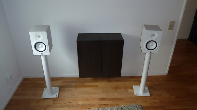 Das geht ja gar nicht! Bei Studiomonitoren müssen die Hochtöner doch auf Ohrhöhe! Da gehören noch zierliche Stands unter. |
