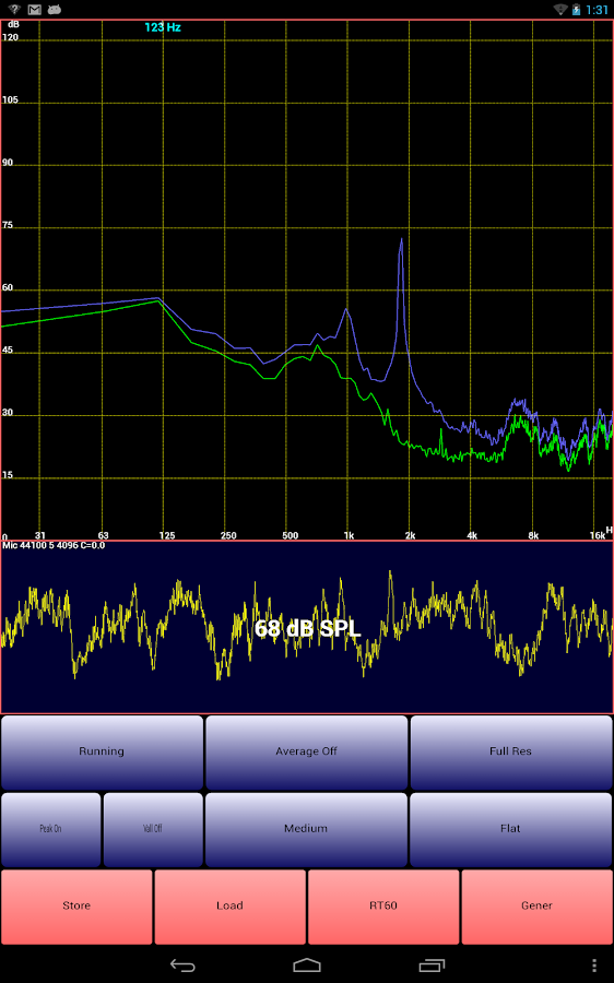 Ja, sorry, 500 natürlich! Es wurde mit Rosa Rauschen (in App integriert) gemacht. Erst wird die Umgebungs- Geräuschkulisse gemessen/kalibriert und dann startet das Rosa Rauschen, nach ~ 9 sec wird dann abgestoppt. |